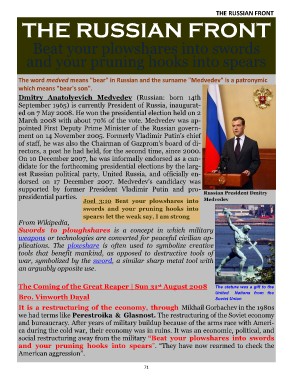 presidential parties. Joel 3:10 Beat your plowshares Russian President Dmitry