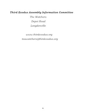 Third Exodus Assembly Information Committee The Watchers Depot Road Longdenville www.thirdexodus.org teawatchers@thirdexodus.org 81
